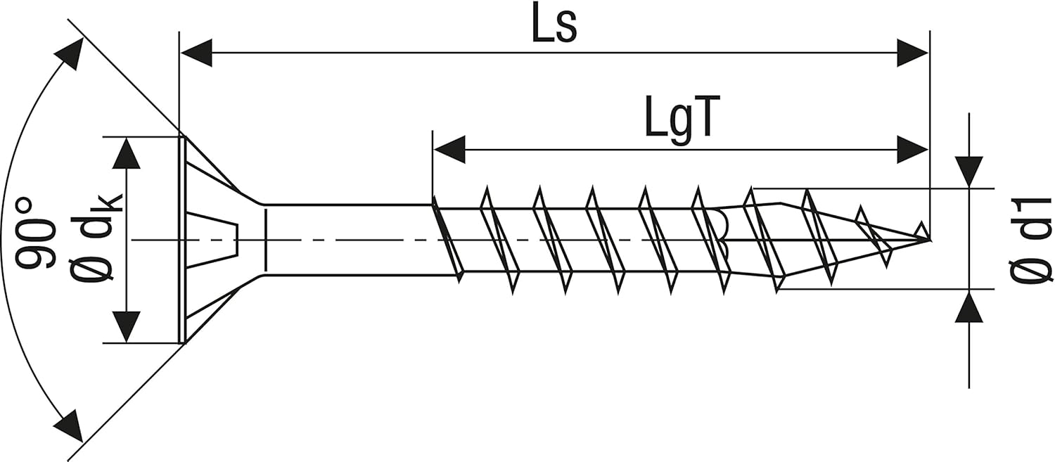 - 4CUT-Spitze: Die vier Kanten an der Spitze verdrängen Holzfasern effizient, reduzieren die Spaltwirkung und machen Vorbohren in den meisten Fällen überflüssig.
