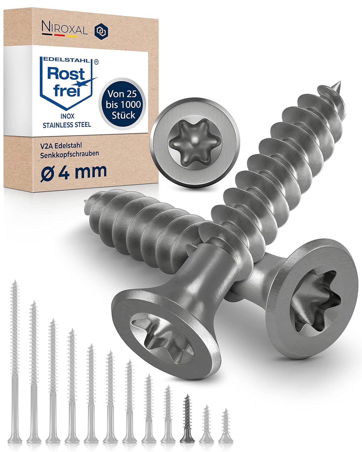 Klar muss man sagen: Bei extrem eisenhaltigem Holz, das auf Edelstahl reagieren könnte, sollte man immer vorsichtig sein, aber für fast alle gängigen Hölzer sind diese Schrauben ideal. Schau dich gerne in unseren anderen Schrauben-Kategorien für weitere Längen und Anwendungen um.