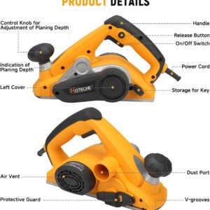 Hoteche 900W Elektrohobel 82 * 3mm - 16000rpm, 65mn Klingen, VDE Stecker, Aluminiumplatte, inklusive Zubehör - Schwarz &Gelb Hoteche 900W Elektrohobel 82 * 3mm - 16000rpm, 65mn Klingen, VDE Stecker, Aluminiumplatte, inklusive Zubehör - Schwarz &Gelb
