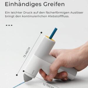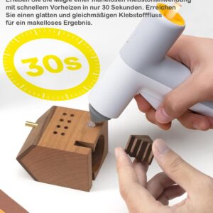 • Die HOTO Akku Heißklebepistole heizt sich in nur 30 Sekunden schnell auf und spart Ihnen wertvolle Zeit. Die Messingdüse mit hoher Wärmeleitfähigkeit sorgt für schnelles Schmelzen der Klebestifte. Die MCH-Vermiculate-Heizplatte gewährleistet eine gleichmäßige Erwärmung und einen konstanten Kleberfluss. Das präzise Austragsvolumen ermöglicht eine exakte Anwendung des Klebers – ideal für Ihre DIY-Projekte