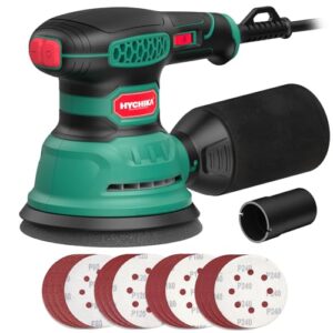 HYCHIKA Exzenterschleifer, 300W 12000OPM Exenterschleifmaschine, 6 Geschwindigkeiten, Compact Exzenterschleifer 125mm, mit 16 Stück Schleifpapier, zum Schleifen, Polieren von Holz und DIY