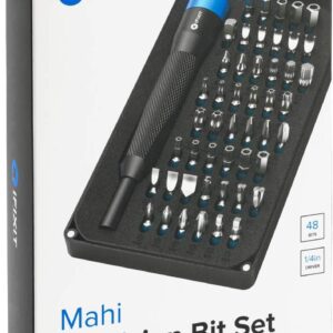 • Das Mahi Precision Bit Set enthält iFixits 1/4" Bithalter aus Aluminium mit magnetischer Bitaufnahme, gerändeltem Griff und Drehkappe – plus 48 Bits.
