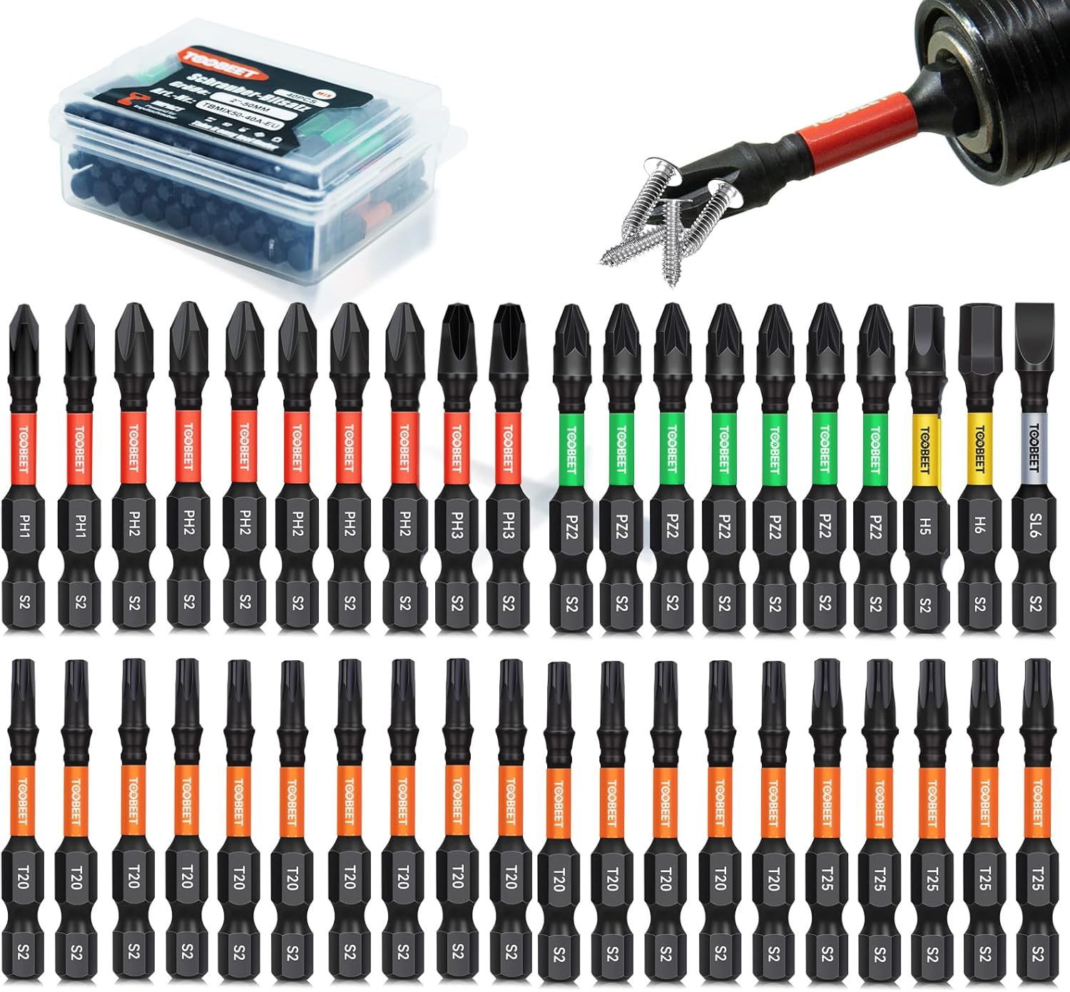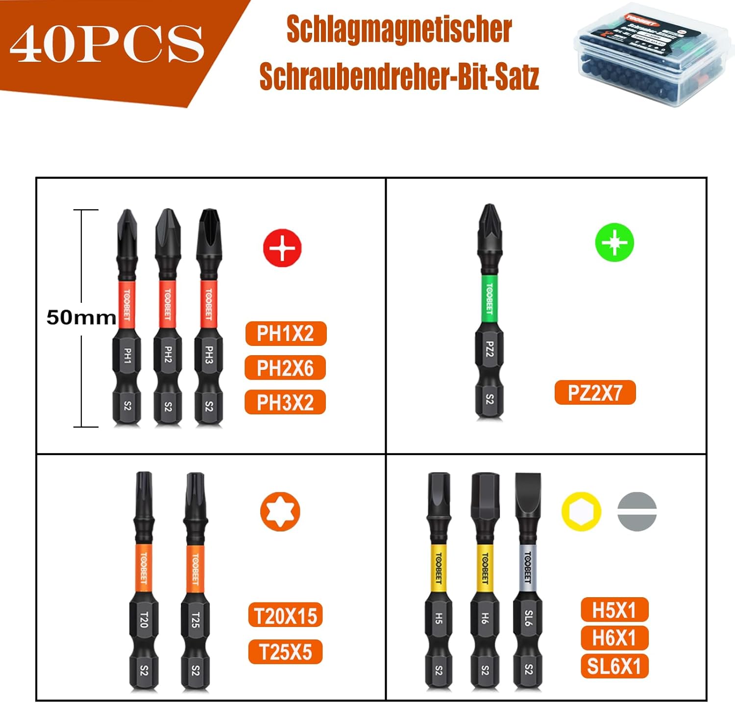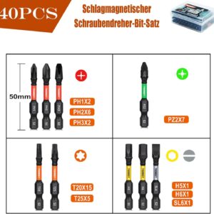 Impact Multi Schraubendreher Bits Set, 40tlg. Magnetischen S2-Stahl 50mm (Torx/PH/PZ/Schlitz/Inbus) Schlagfeste Schrauber Bitsatz für Schlagwerkzeuge inkl. robuster Aufbewah Ungsbox Impact Multi Schraubendreher Bits Set, 40tlg. Magnetischen S2-Stahl 50mm (Torx/PH/PZ/Schlitz/Inbus) Schlagfeste Schrauber Bitsatz für Schlagwerkzeuge inkl. robuster Aufbewah Ungsbox