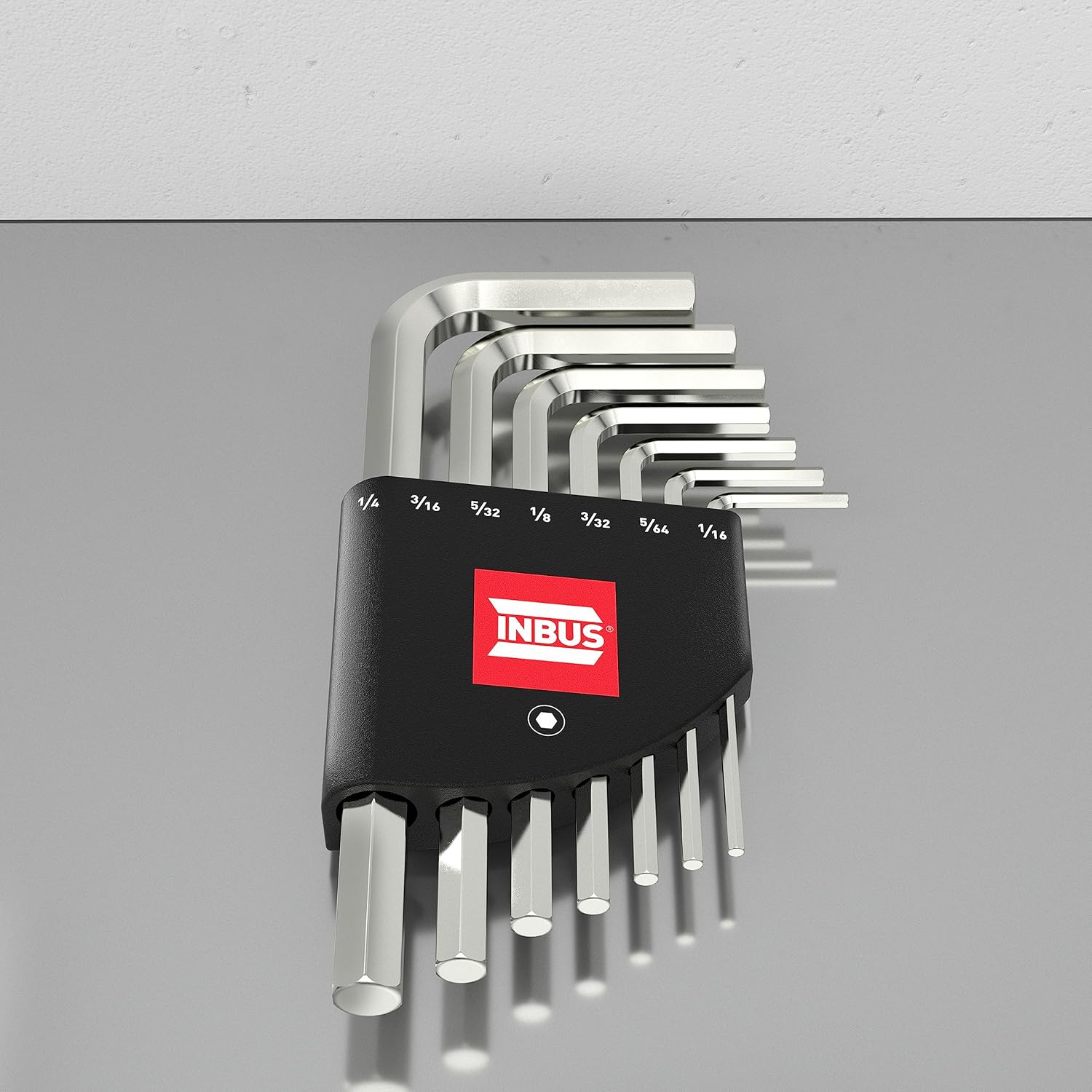 Das INBUS® 70389 Winkelschraubendreher Set ist die erste Wahl für Profis und ambitionierte Schrauber, die mit zölligen Maschinen und Geräten arbeiten. Die sieben gängigen Größen decken nahezu alle Standardfälle bei US-amerikanischen oder britischen Fabrikaten ab und sorgen für präzisen Halt bei jedem Arbeitsschritt.