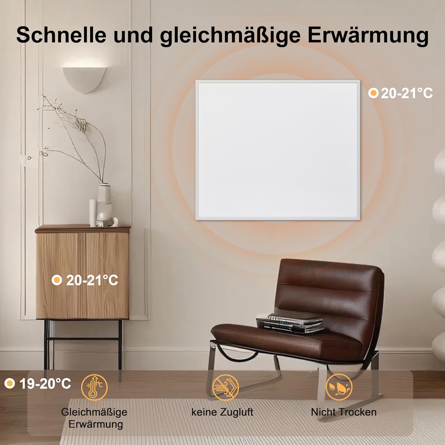 - Keine Austrocknung: Die Infrarot-Strahlungswärme erhält die natürliche Luftfeuchtigkeit im Raum, was ein angenehmeres Arbeitsklima gegenüber klassischen Heizlüftern erzeugt.