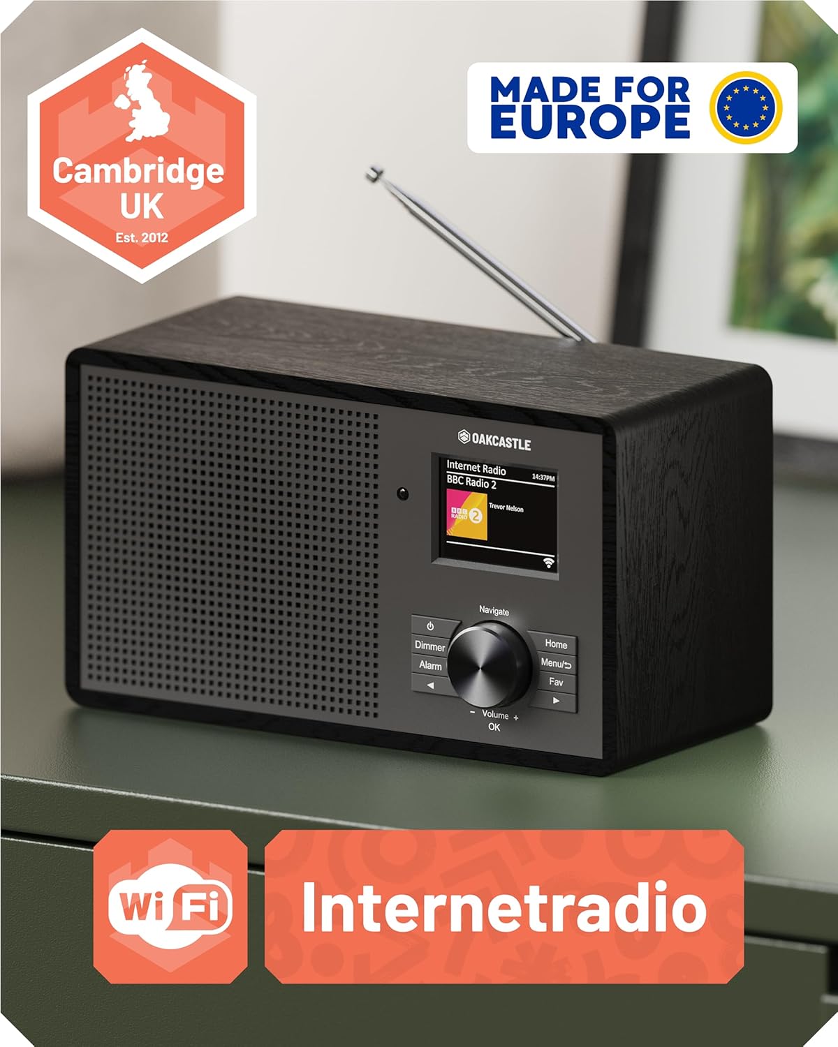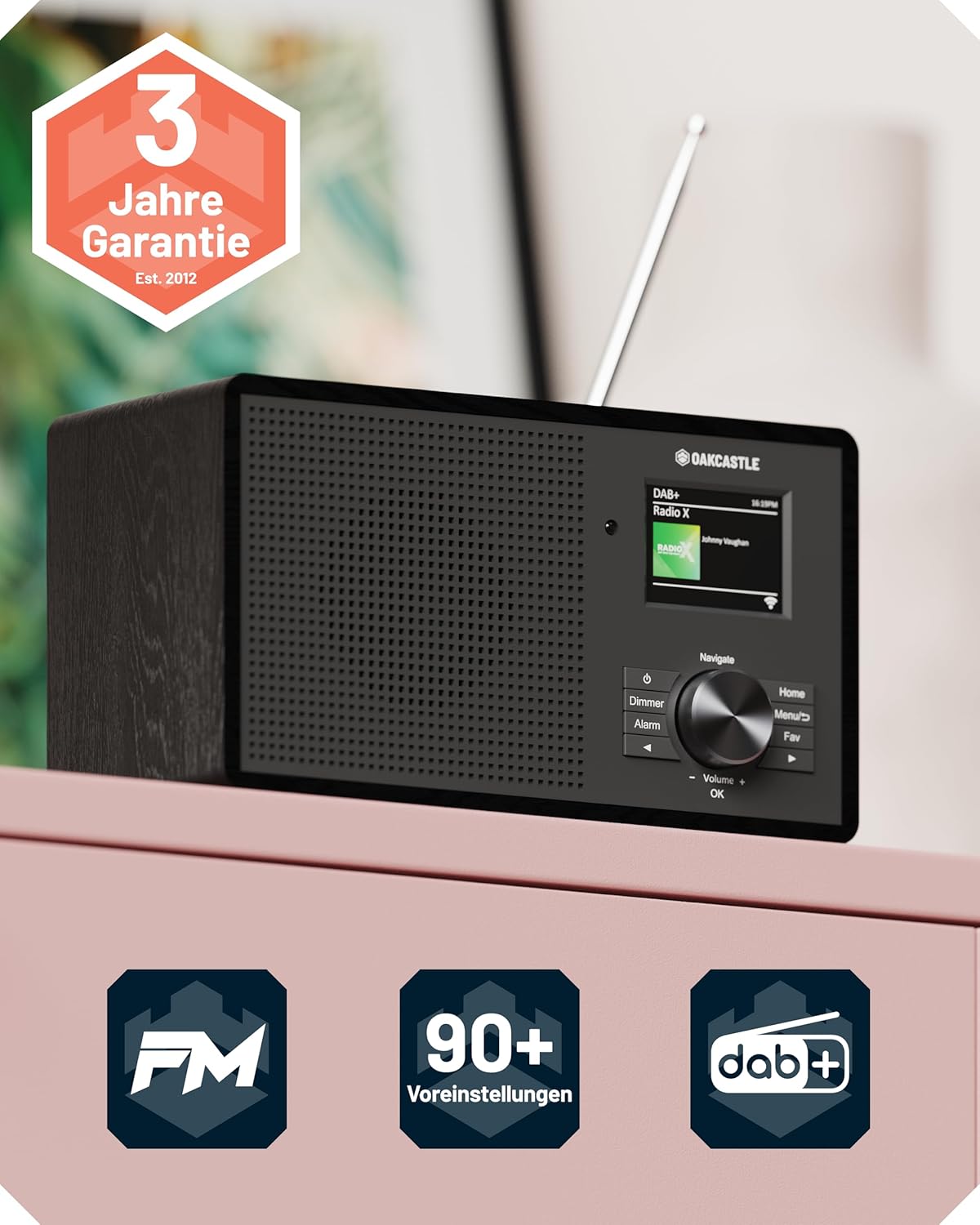 • INTERNETRADIO, DAB+, UKW: Genießen Sie klaren Sound mit dem Oakcastle IR200 WLAN-Internetradio. Hören Sie Tausende von Sendern weltweit über DAB+, UKW und WLAN-Internetradio. Es eignet sich auch ideal als Küchenradio und ist als kleines Internetradio kompakt und vielseitig einsetzbar.