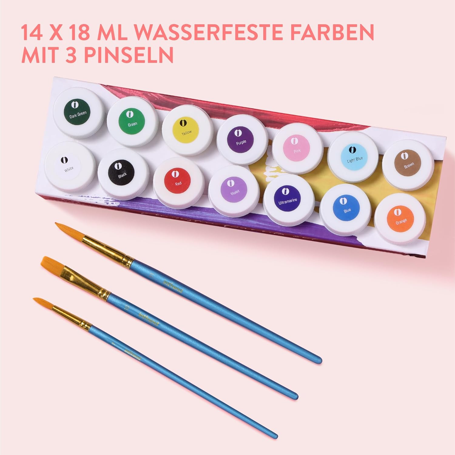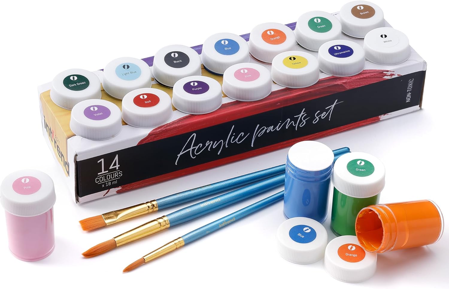 int!rend Acrylfarben Set mit Pinseln - 14 x 18ml Acryl Farben - Wasserfeste Acrylfarbe für Leinwand Holz Ton & Steine - Malfarben Holzfarbe Steinfarben wetterfest aussenint!rend Acrylfarben Set mit Pinseln – 14 x 18ml Acryl Farben – Wasserfeste Acrylfarbe für Leinwand Holz Ton & Steine – Malfarben Holzfarbe Steinfarben wetterfest aussen