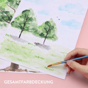 • Pinselreinigung: Die Pinsel unmittelbar nach Gebrauch gründlich mit klarem Wasser auswaschen, um Verklebungen durch die Acrylfarbe zu verhindern.