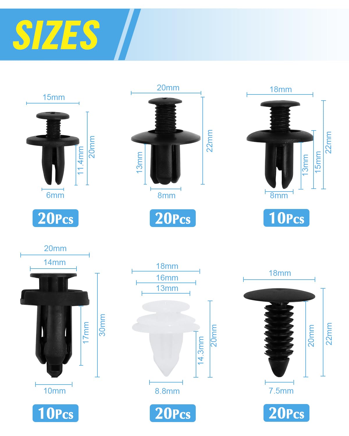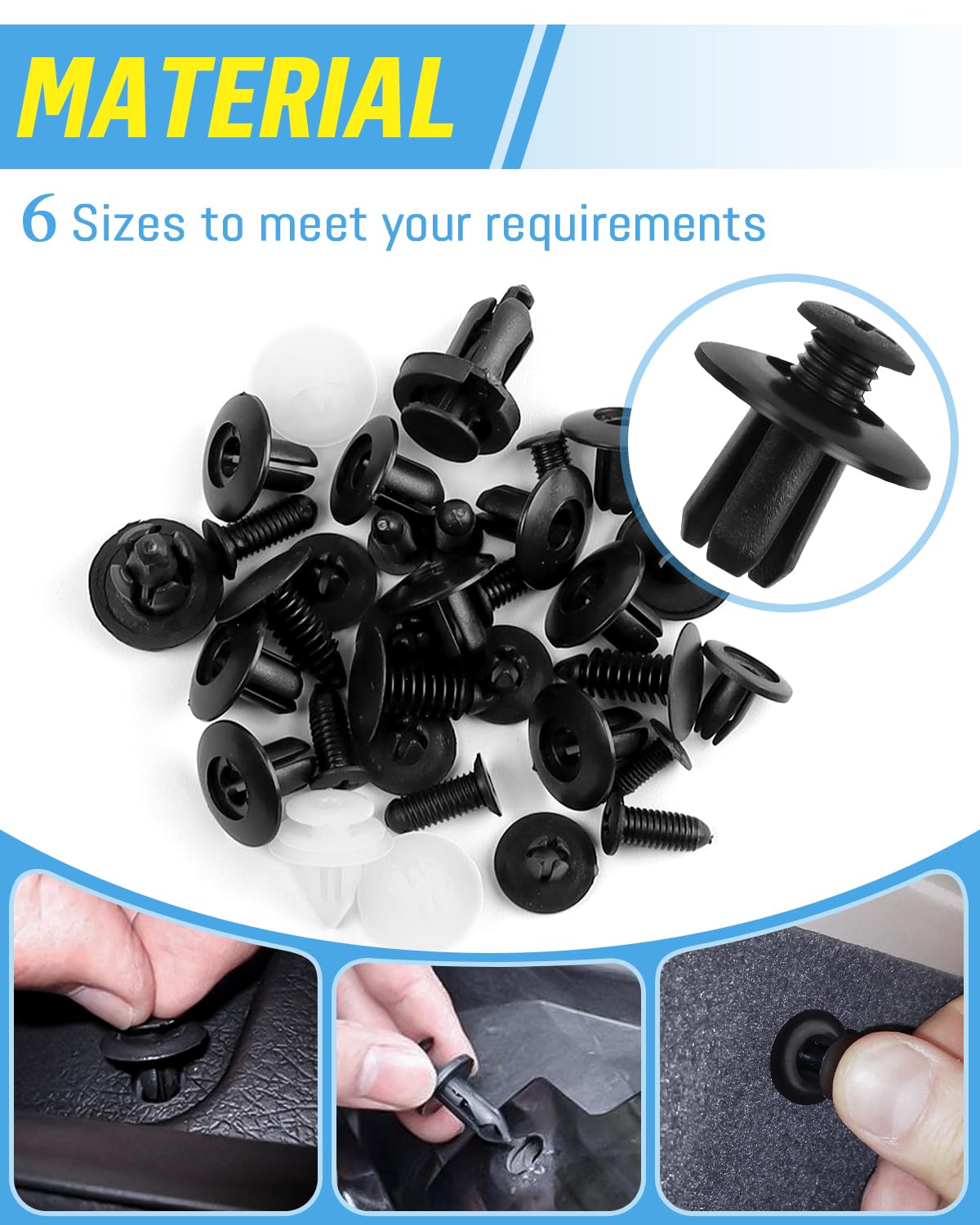 - Vielseitige Abdeckung: 6 verschiedene Größen in einem Set decken 95 % aller gängigen Clip-Befestigungen bei Fahrzeugen und Motorrädern ab.