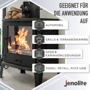 Die Jenolite Sprühfarbe ist für hitzebeständige Anwendungen konzipiert, was sie ideal für den Einsatz an Öfen im Innenbereich macht. Achten Sie bei der Anwendung in geschlossenen Räumen stets auf eine gute Belüftung, um den Trocknungsprozess zu unterstützen und die Geruchsbildung zu minimieren.