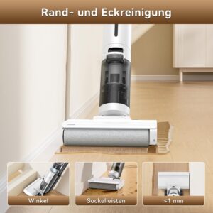 - • Gründliche Kantenreinigung mit 1 mm Präzision: Erreicht Fußleisten und Ecken, wo normale Wischmopps versagen