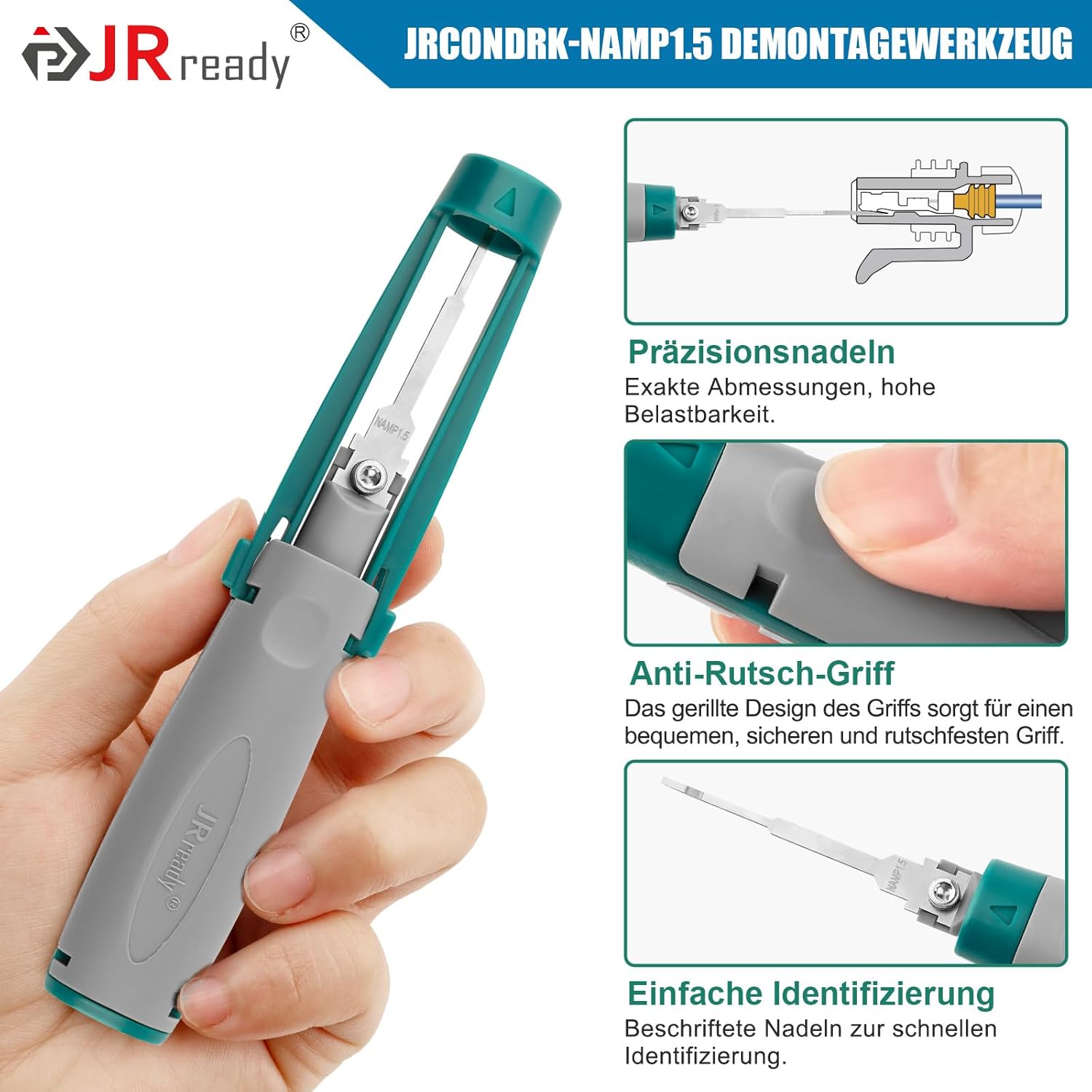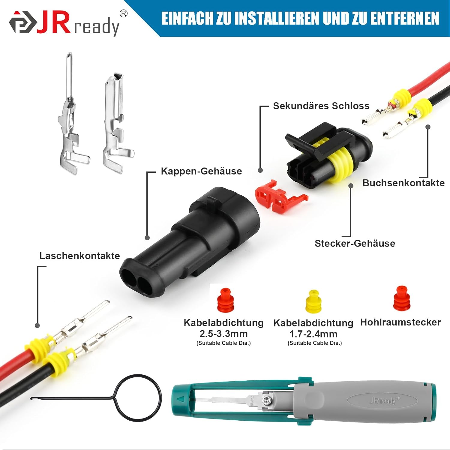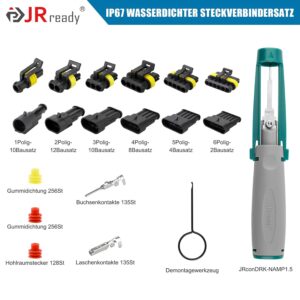- Komplettes Profi-Set inklusive Spezialwerkzeug: Die mitgelieferten Abziehwerkzeuge (JRconDRK-NAMP1.5) ermöglichen ein beschädigungsfreies Entfernen von Pins, ohne die empfindlichen Kabel oder Klemmen zu verformen.