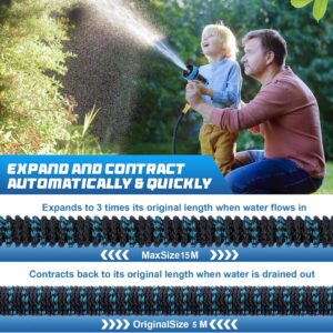 Jsdoin Gartenschlauch Flexibel 15m, Ausziehbare Garten Schlauch Dehnbarer mit 10 Funktions Gartenbrause, 1/2″ 3/4″ Adapter für Wasserschlauch Flexibler Garden Hose – Jsdoin