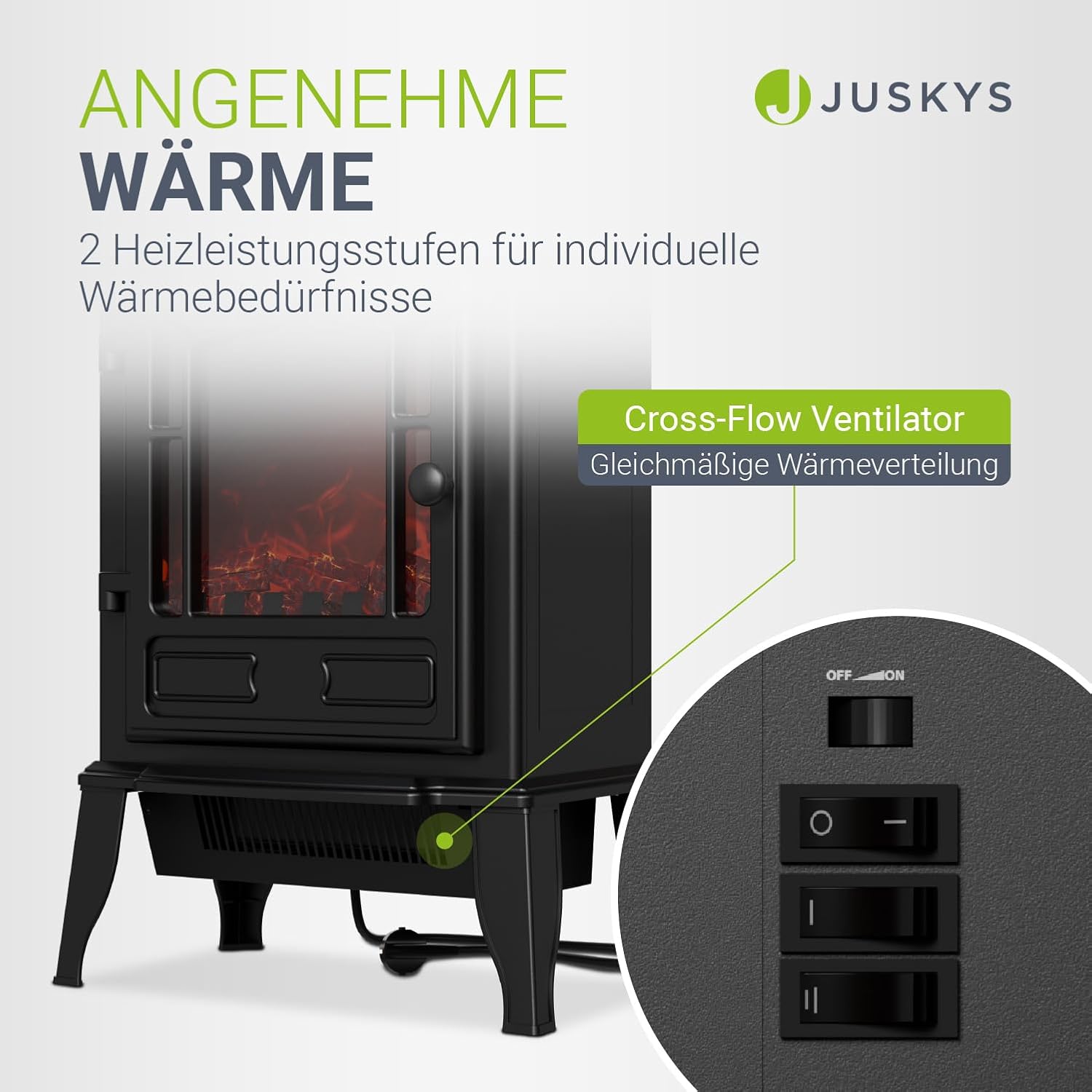 Vorteile des Produkts Juskys Elektrokamin 2000 W – Schwarz