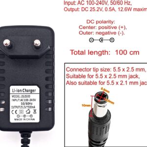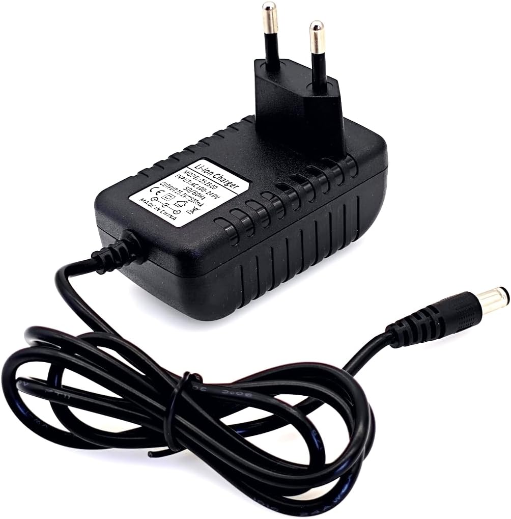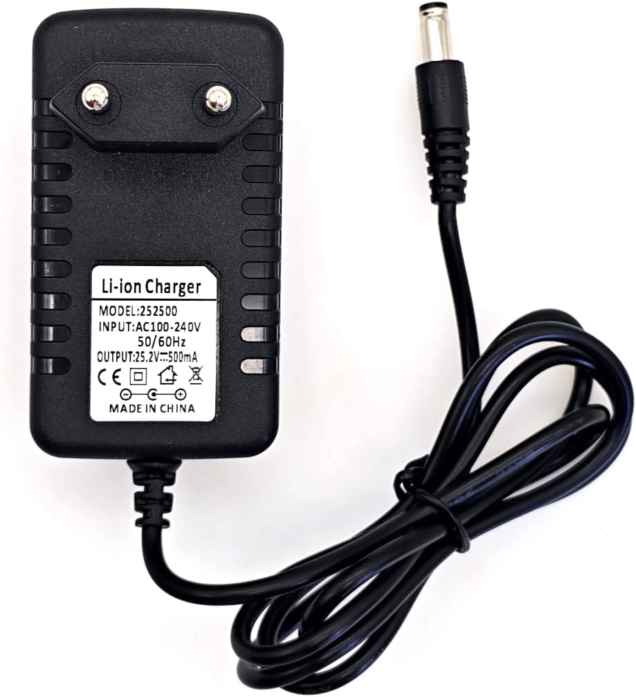 Im Lieferumfang dieses Produkts ist ein einzelnes AC/DC-Netzteil enthalten, das speziell für Li-Ionen-Akkus mit 25,2 V und 500 mA entwickelt wurde. Es dient damit ideal als kompakte Ersatzlösung, falls Ihr Originalgerät verloren gegangen oder defekt ist.
