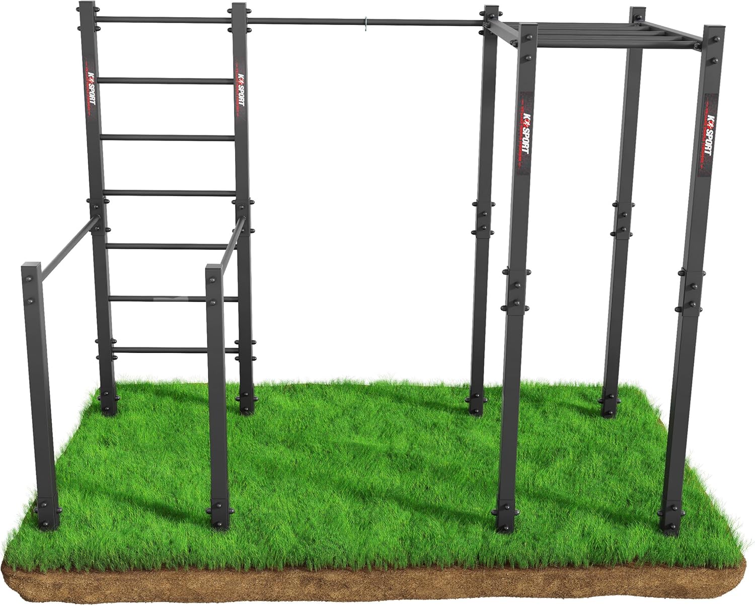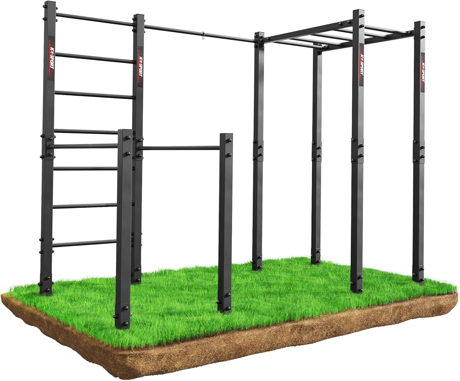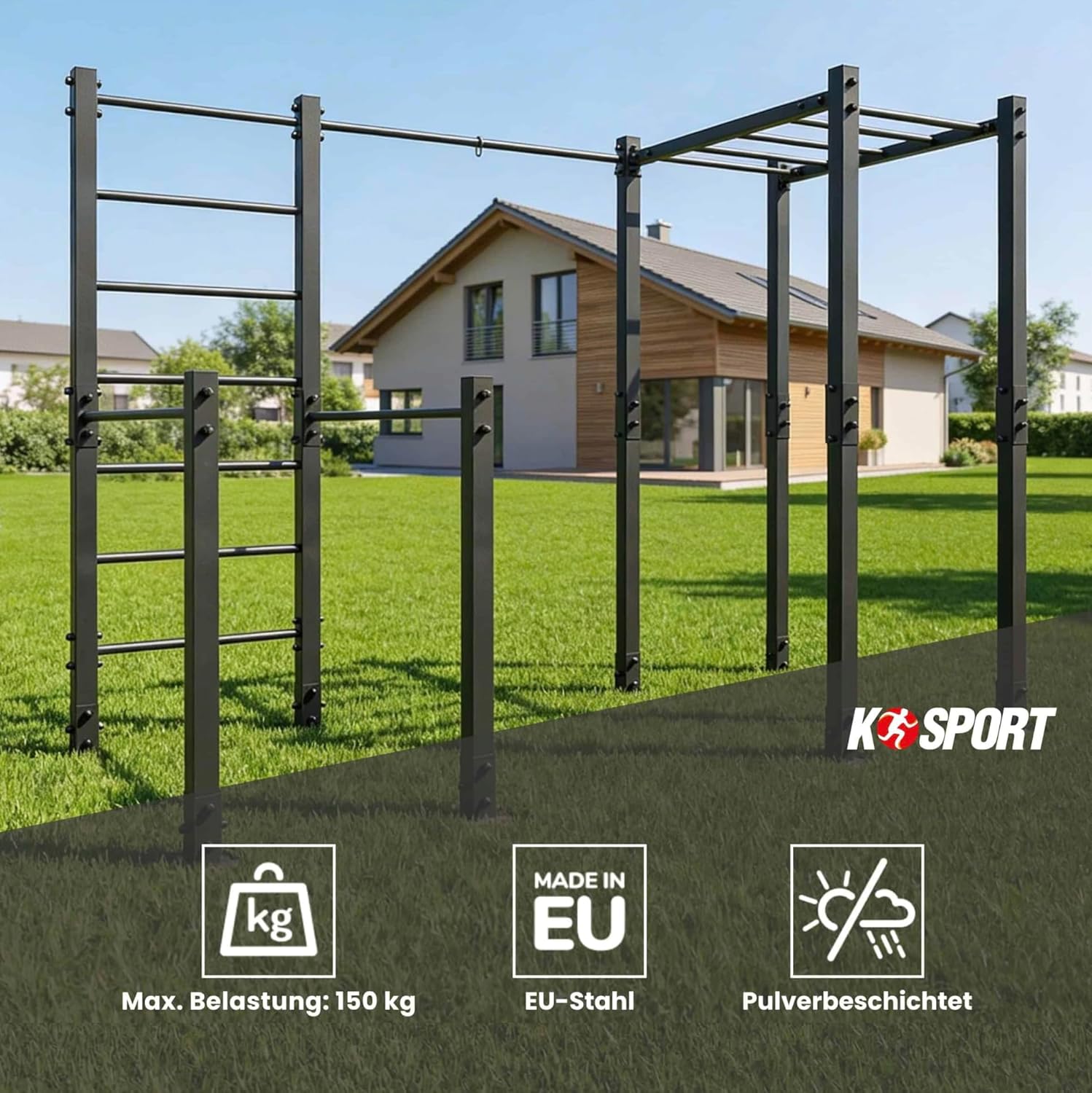 K-Sport: Calesthenics Turnstange für den Garten I Reckstange Garten bis 150 kg belastbar I Wetterfeste Kraftstation mit Barren, Sprossenwand, Klimmzugstange & Hangelleiter I Made in EU