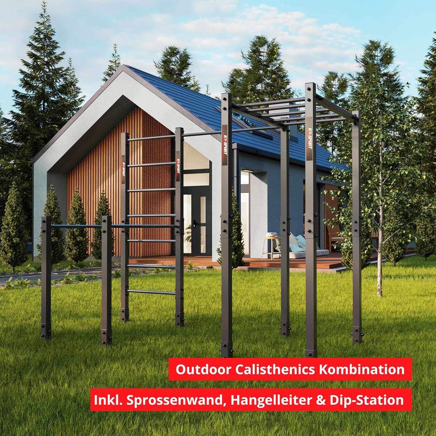 K-Sport: Calesthenics Turnstange für den Garten I Reckstange Garten bis 150 kg belastbar I Wetterfeste Kraftstation mit Barren, Sprossenwand, Klimmzugstange & Hangelleiter I Made in EUK-Sport: Calesthenics Turnstange für den Garten I Reckstange Garten bis 150 kg belastbar I Wetterfeste Kraftstation mit Barren, Sprossenwand, Klimmzugstange & Hangelleiter I Made in EU