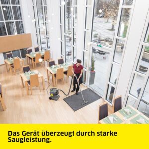 • Flüssigkeitsaufnahme inklusive: Der 22 l Kunststoffbehälter schluckt neben Staub auch problemlos Wasser und andere Flüssigkeiten.