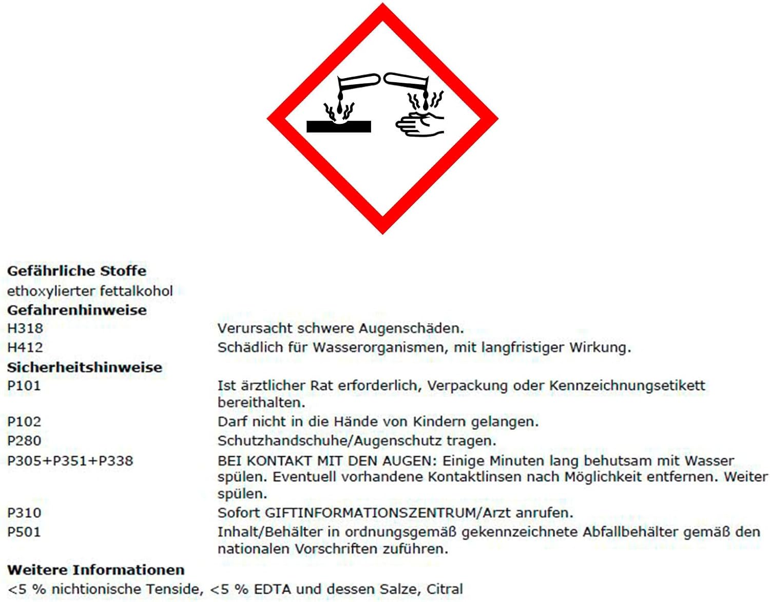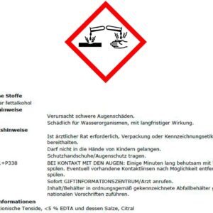 | Zusatzstoffe | EDTA & Salze (< 5%), Citral |