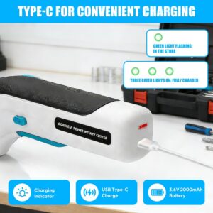 Kartonschneider Elektrisch 3,7V, mit 2000 mAh Wiederaufladbarer Elektrische Schere, Kabellose Pappe Schneider mit Sicherheitssperre für Karton,Teppich, Leder,Stoff und Kunststoff – Marke: XJJAUGKLY