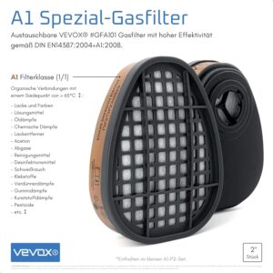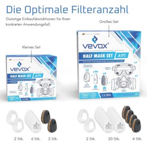 - Umfangreiches Set: Der Lieferumfang mit 6x P2 Partikelfiltern und 2x A1 Gasfiltern ermöglicht einen sofortigen Start und sichert den Betrieb für komplexe Arbeiten.