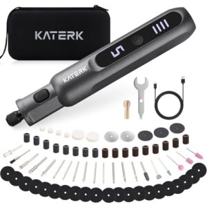 Katerk Mini Akku Multifunktionswerkzeug,5 Gang Rotationswerkzeug Set,5000-20000 U/min & 70 Zubehörteile, Mehrzweck 3,7 V Schleifschleifset zum Schleifen,Gravieren,Polieren, Bohren,DIY-Bastelarbeiten