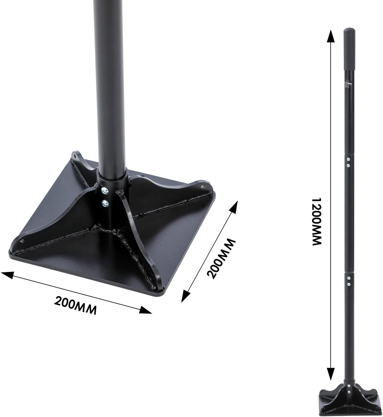 - Vollstahl-Konstruktion: Der schwere Stahlfuß sorgt für das reale Eigengewicht, das du für eine wirksame Verdichtung benötigst – ohne dass der Stampfer beim ersten Einsatz verbiegt.