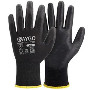 KAYGO 12 Paar Arbeitshandschuhe für Herren Damen, PU beschichtet Schutzhandschuhe, antirutsch Griff an Handflächen und Fingern, Geeignet für DIY allgemeine Arbeit Gartenarbeit (Schwarz, L, Gr 9)