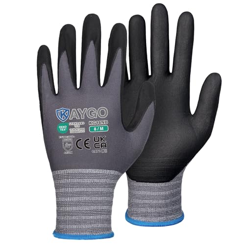 KAYGO Arbeitshandschuhe für Herren 3 Paar, Mikro Schaum Nitril beschichtet Atmungsaktiv Nylon Schutzhandschuhe, Antirutsch Grip Leicht Ölbeständig, Ideal für Auto Arbeit, KG18N (Schwarz, M, Gr 8)
