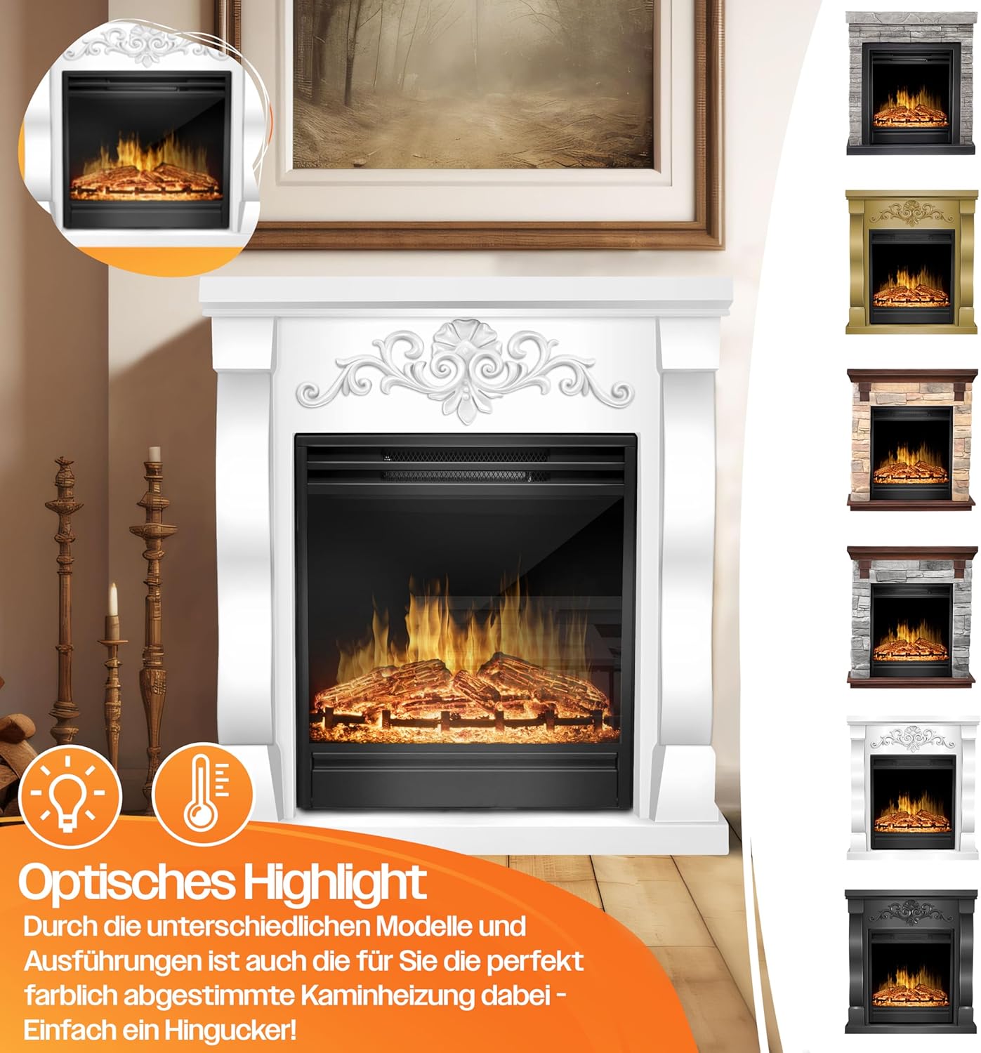 - Realistisches Ambiente: Der 3D-Flammeneffekt mit drei Helligkeitsstufen sorgt für Kamin-Atmosphäre, selbst wenn die Heizfunktion ausgeschaltet ist.