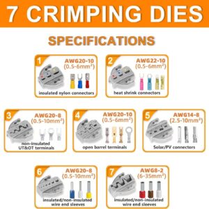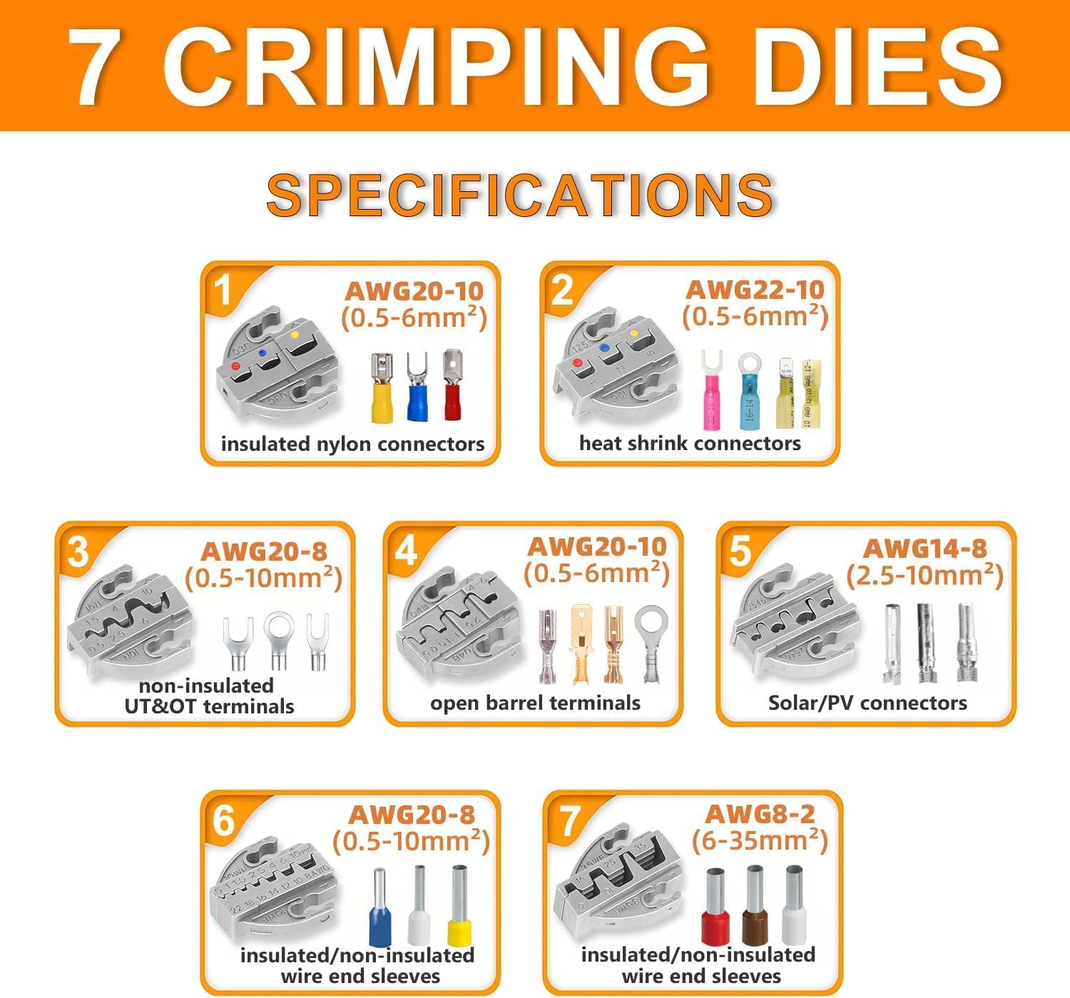 - Maximale Flexibilität: Durch sieben schnell wechselbare Crimpbacken deckst du alle gängigen Verbindungstypen wie Kabelschuhe, Aderendhülsen und Solarsteckverbinder mit nur einem Handgriff ab.