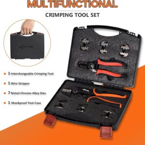 Das 9-teilige Set von KF CPTEC umfasst eine hochwertige Ratschen-Crimpzange, eine praktische Abisolierzange sowie sieben austauschbare Crimpbacken. Damit deckt das Set eine große Bandbreite an Crimparbeiten ab und ersetzt mehrere Einzelwerkzeuge durch eine kompakte Komplettlösung.