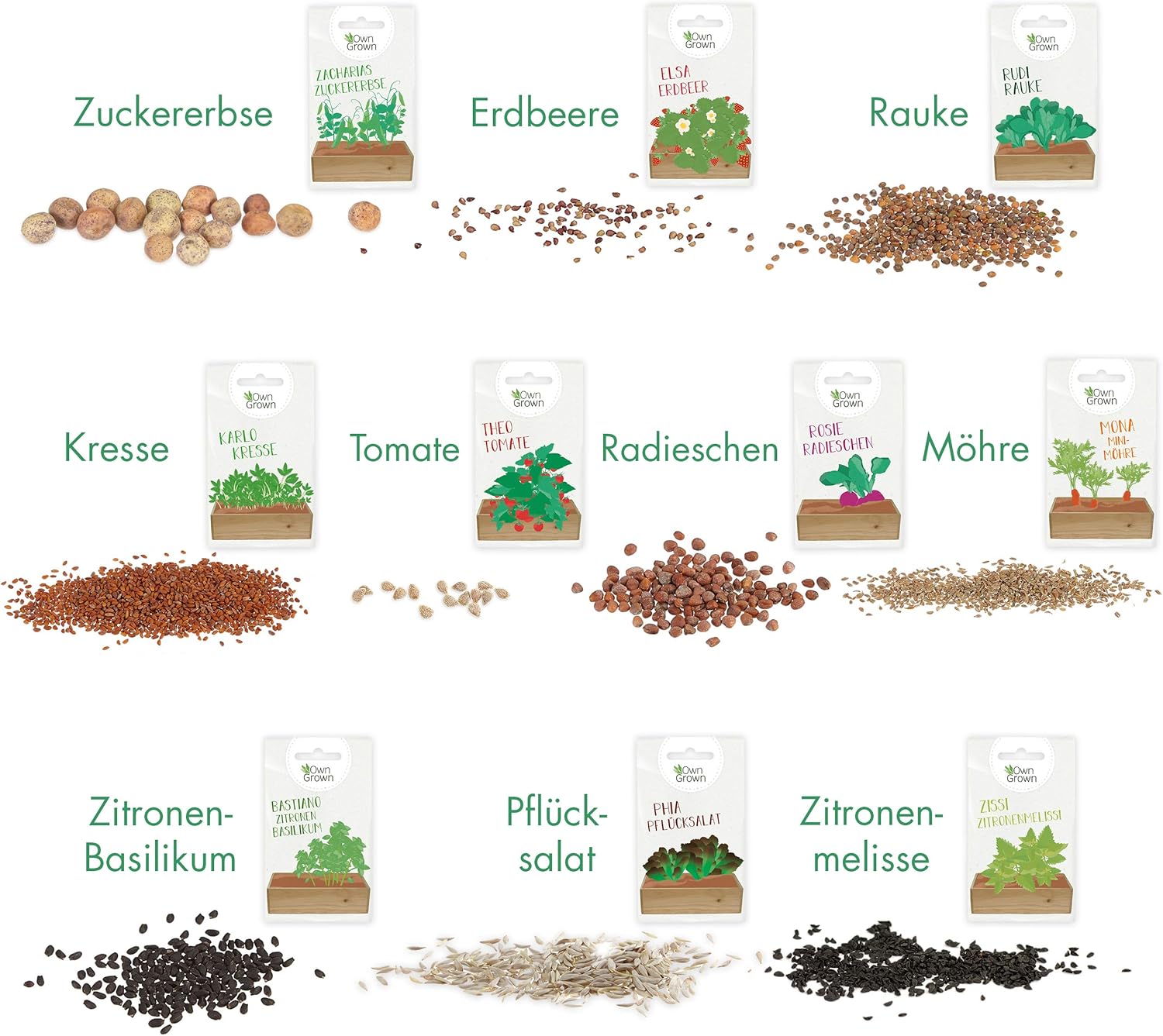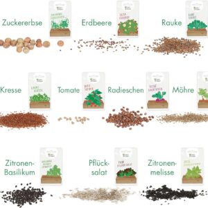 - Alles drin, sofort startklar: Mit 10 verschiedenen Sorten deckst du eine breite Palette ab, von schnellwachsender Kresse bis zum ersten eigenen Erdbeerpflänzchen.