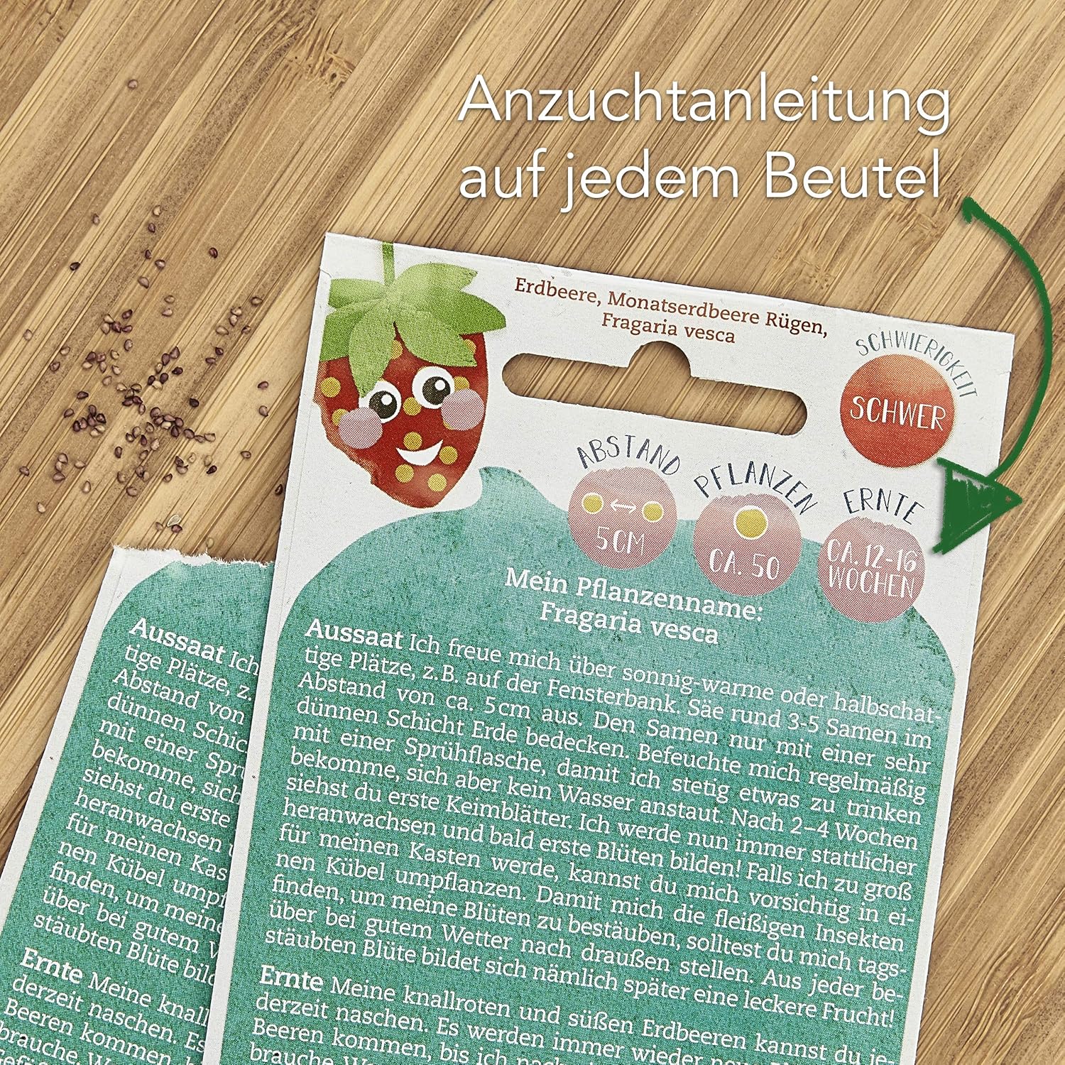 - Kindgerechte Wissensvermittlung: Da die Anleitungen direkt auf den Tütchen stehen, können die Kids direkt mitlesen und lernen, wie aus einem Samen eine Pflanze wird.