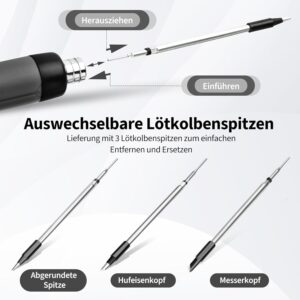 • 🧡【KOMPLETTES LöTKOLBEN SET】Das Lötkolben Set enthält einen Lötkolben, Lötdraht, Lötpaste, Halter mit Reinigungsschwamm, 3 Lötspitzen, TYPE-C-Ladekabel und eine Anleitung. Dieses Lötkolben Set erfüllt alle Ihre Lötanforderungen. Der Lötkolbenschwamm entfernt mühelos Flecken von den Lötkolbenspitzen und verlängert deren Lebensdauer.