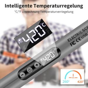 KKMOL Akku Lötkolben Set, USB Wiederaufladbar Lötkolben mit LCD, Temperatur Einstellbare 330 ℃-420 ℃, 3 Lötspitzen, Lötdraht, Lötpaste, Professionelles Sicheres Komplettes Lötkolben-grau