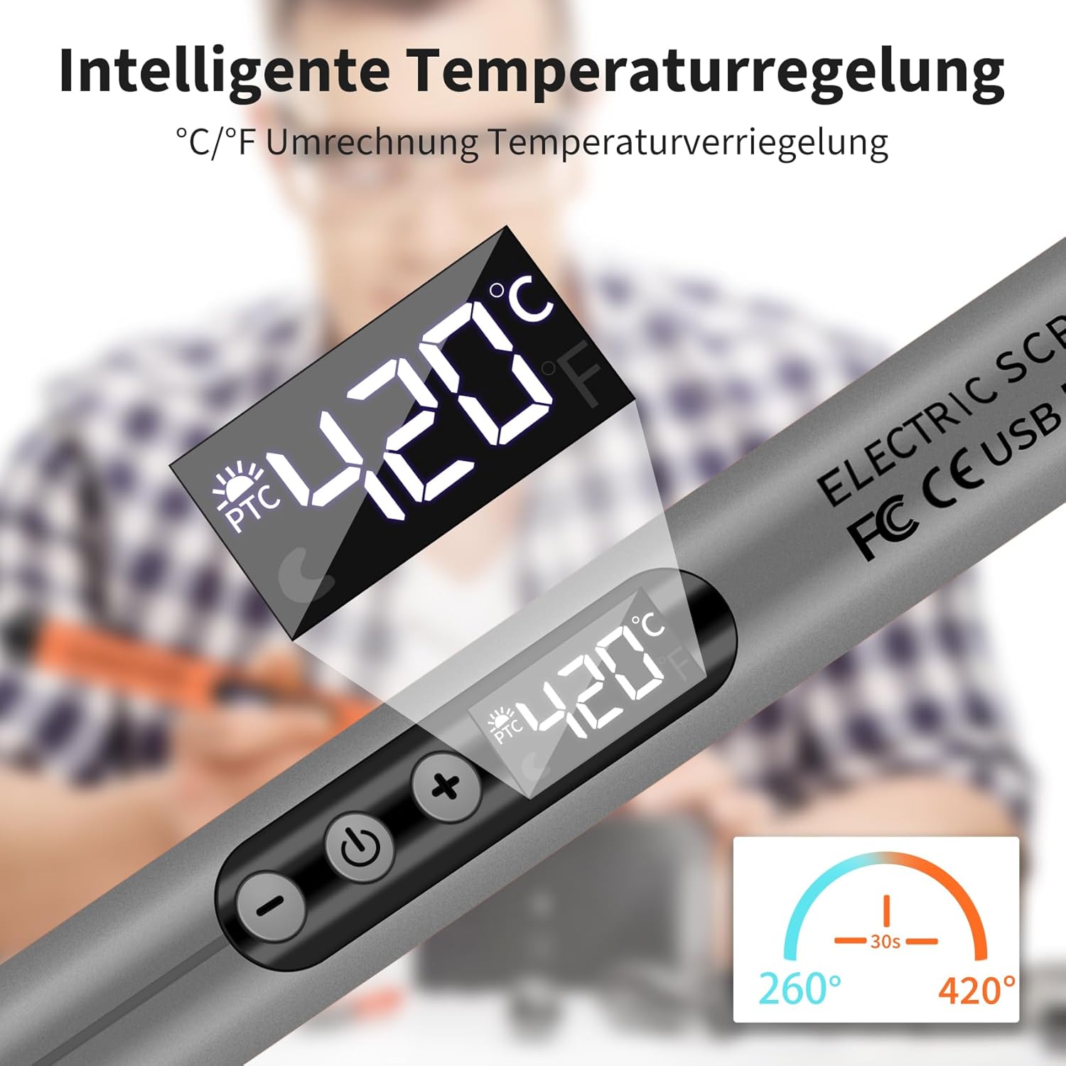 • 🧡【LED-Lötkolben und hitzebeständiger Griff】 Der Lötkolben verfügt über ein hochauflösendes LED-Display, das den Temperaturstatus deutlich anzeigt; der hitzebeständige Griff isoliert die Temperatur effektiv, was besser für langfristige Schweiß- und Reparaturarbeiten geeignet ist. ❗Warm Tip: Der Lötkolben schaltet sich automatisch nach 10 Minuten ununterbrochener Arbeit aus, um die Sicherheit der Verwendung zu gewährleisten.