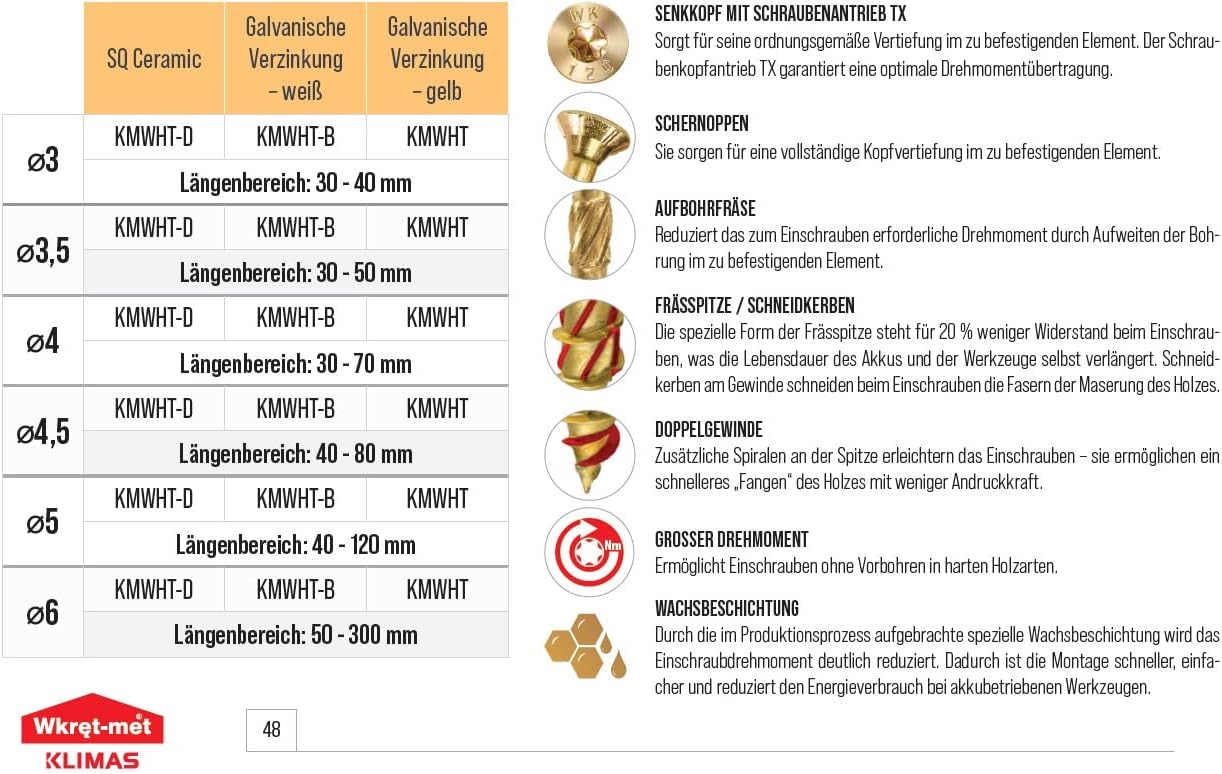 Vorteile des Produkts KLIMAS Holzschrauben Torx – Spanplattenschrauben Gelb