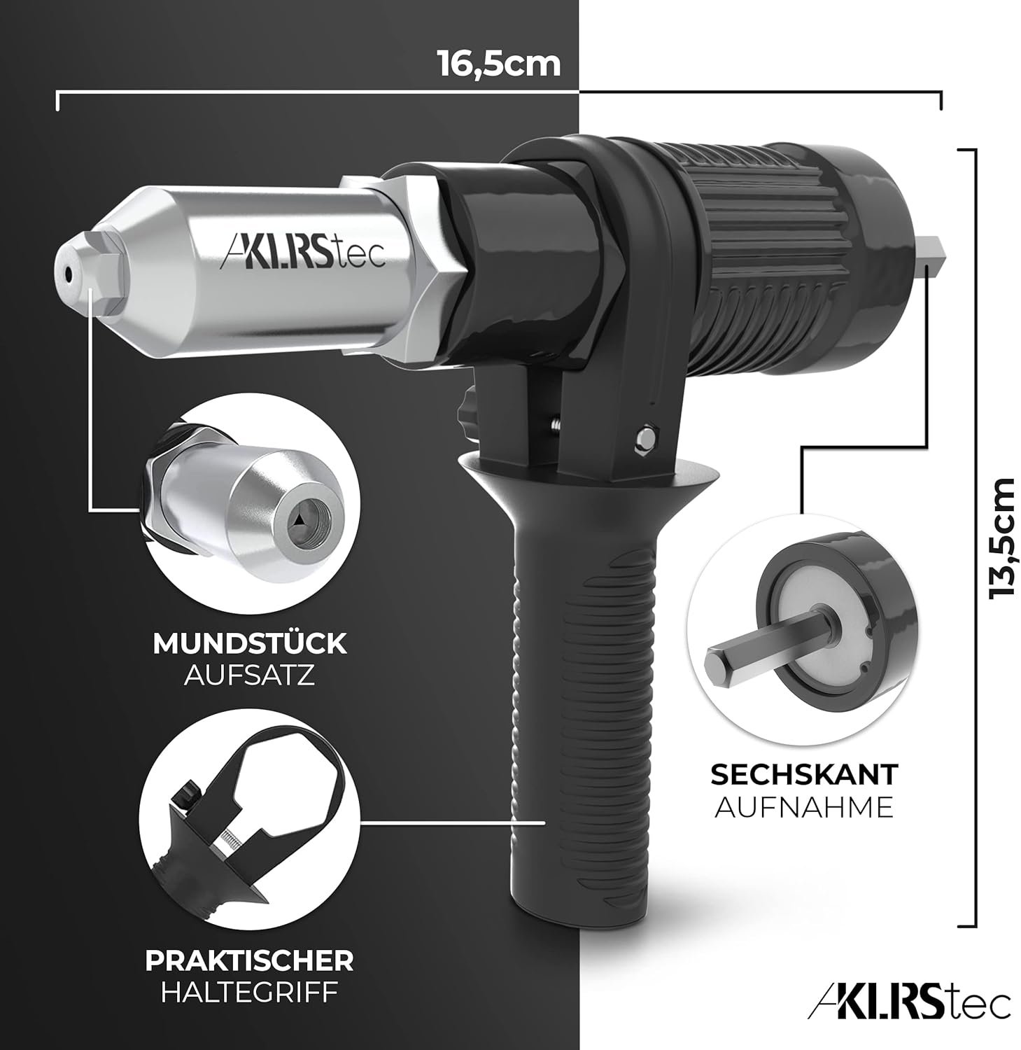 Ein Nietaufsatz wie der KLRStec Professional Nietadapter ist ein Werkzeugaufsatz, der Ihren vorhandenen Akkuschrauber oder Ihre Bohrmaschine in eine leistungsstarke Nietzange verwandelt. Dadurch können Sie Blindnieten und Popnieten effizient und mit deutlich weniger Kraftaufwand verarbeiten als mit einer manuellen Nietzange.