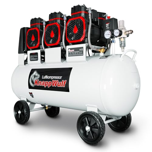 KnappWulf Flüsterkompressor Luftkompressor KW6200, Druckluftkompressor, 100L Tank, 4500W, 69dB,10 Bar Betriebsdruck, 768/min Luftdurchsatz, mit Wasserabscheider, leise, 400V
