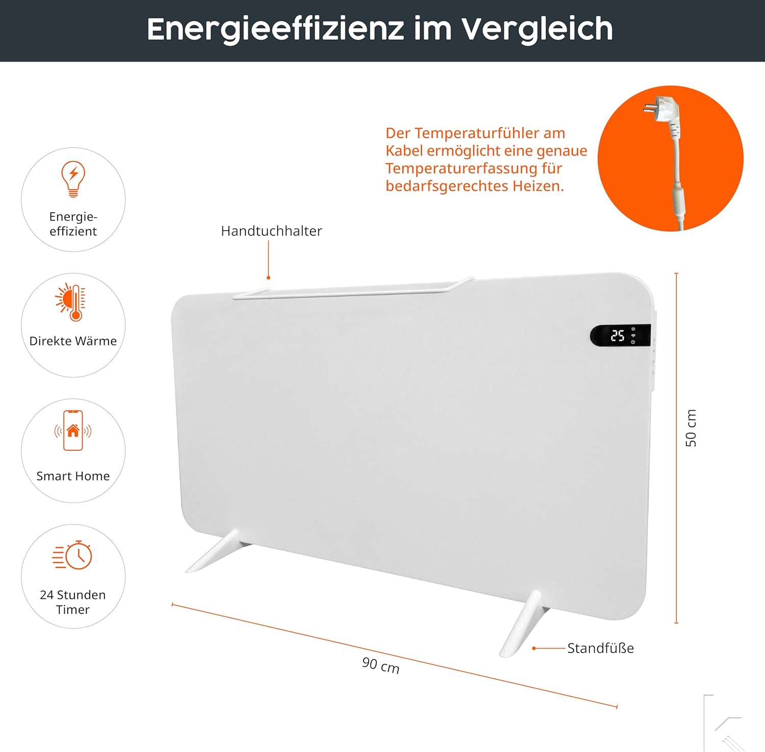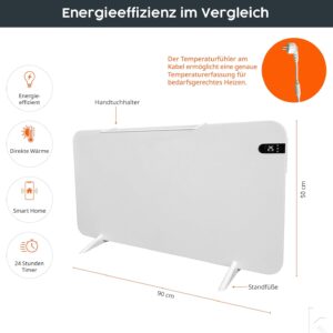 - Smarte Konnektivität: Über die App-Steuerung per WLAN oder die beiliegende Fernbedienung regelst du die Heizzyklen punktgenau, um Energiekosten effizient niedrig zu halten.