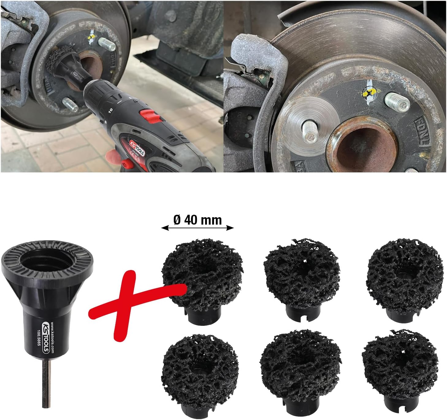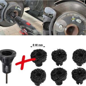 zur Verwendung mit Bohrmaschinen und Akkuschraubern (max. Drehzahl 1.500 U/min) einsetzbar. kein Funkenflug. ideal einsetzbar für PKW-, Transporter- und Grossraumlimousinen-Radnaben mit Stehbolzen bis Ø 40 mm Durchmesser. für optimale Reinigung von Radnaben und Bremsscheiben. verschleißarm – maximale Standzeit (pro Scheibe ca. 50 Fahrzeuge)