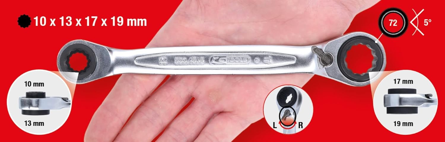 KS Tools 503.4565 4 in 1 GEARplus umschaltbar Doppel-Ratschenringschlüssel, 10x13x17x19mm