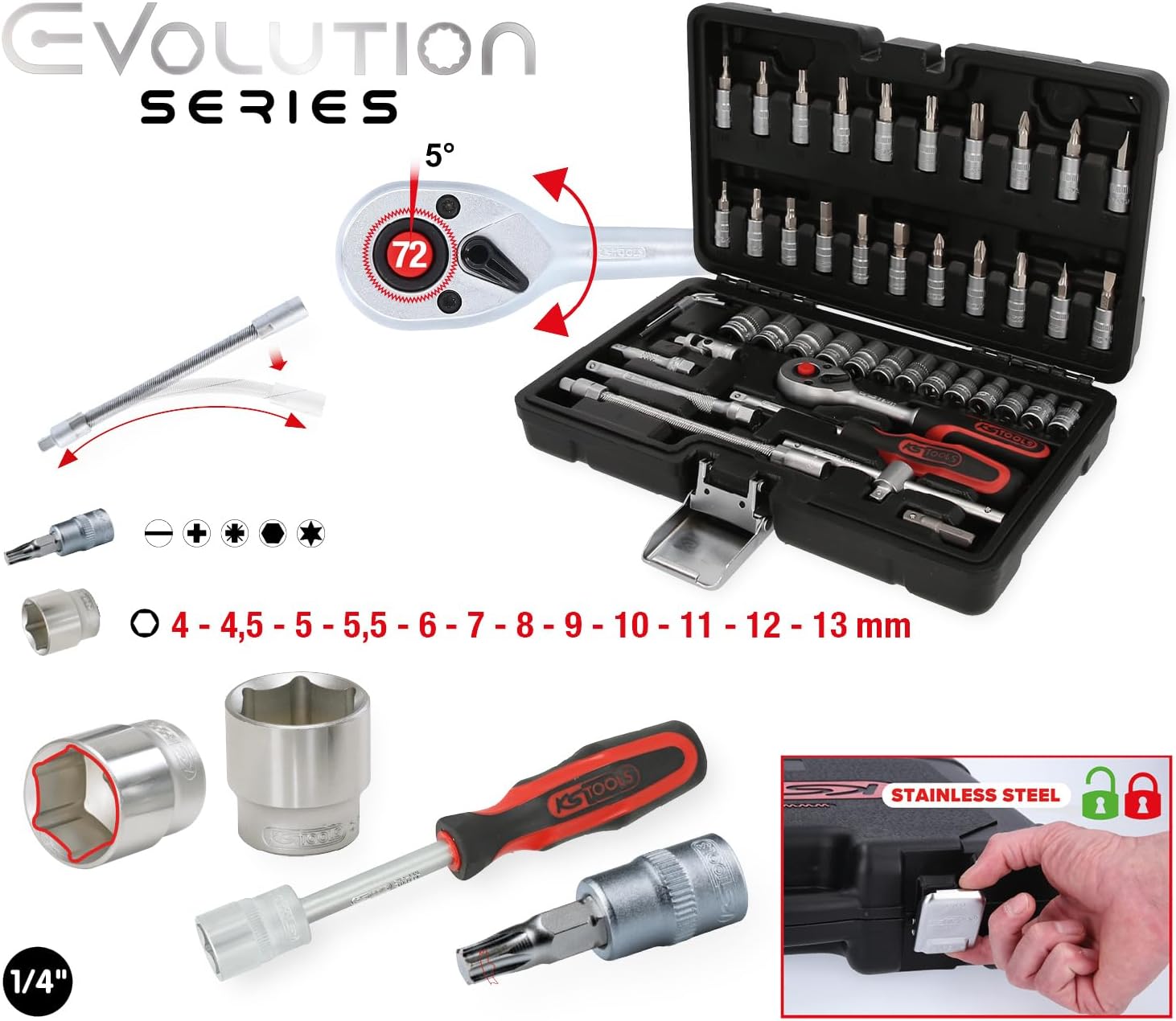 Vorteile des Produkts KS Tools 917.0648 1/4″ Steckschlüssel-Satz
