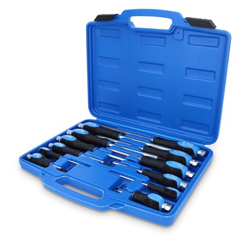 • LIEFERUMFANG: 1x BRILLIANT TOOLS Schraubendreher-Satz mit Schlagkappe 12-tlg, Schlitz, PH Phillips Inhalt: 1x Schraubendreher Schlitz, 3,0 mm 1x Schraubendreher Schlitz mit Schlagkappe, 5,0 mm 1x Schraubendreher Schlitz mit Schlagkappe, 6,0 mm 1x Schraubendreher Schlitz mit Schlagkappe, 6,0 mm 1x Schraubendreher Schlitz mit Schlagkappe, 8,0 mm 1x Schraubendreher Schlitz mit Schlagkappe, 9,5 mm 1x Schraubendreher Kreuzschlitz mit Schlagkappe, PH0 1x Schraubendreher Kreuzschlitz mit Schlagkappe,