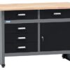 Küpper Werkbank 12059, 120x84x60cm, 2 Schubladen, 2 Türen, 300 kg Traglast, 30 mm Massive Buchenarbeitsplatte (Schwarz)