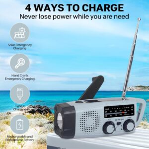 - 3 FACH LADEOPTIONEN:Radio Batteriebetrieben Ein tragbares Radio mit mehreren Ladeoptionen ist die ideale Wahl. Zu den 3-Wege-Ladeoptionen gehören ein DC 5 V USB-Stromeingang, eine Handkurbel und ein Solarpanel, die leistungsstärker und zuverlässiger sind und sicherstellen, dass das Notfallradio immer für Sie verfügbar ist.