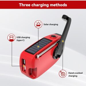- 【4 Stromquellen für jeden Notfall】 Nie wieder ohne Strom! Dieses Notfallradio lässt sich über eine Handkurbel, ein Solarpanel, USB-C oder 2 AA-Batterien (nicht im Lieferumfang enthalten) aufladen. Perfekt für Stromausfälle, Stürme, Camping oder Wanderungen – bleiben Sie informiert und in Verbindung, wenn das Stromnetz ausfällt. Nur 1 Minute Kurbeln reicht aus, um die Taschenlampe 30 Minuten lang oder das Radio 4 Minuten lang mit Strom zu versorgen.