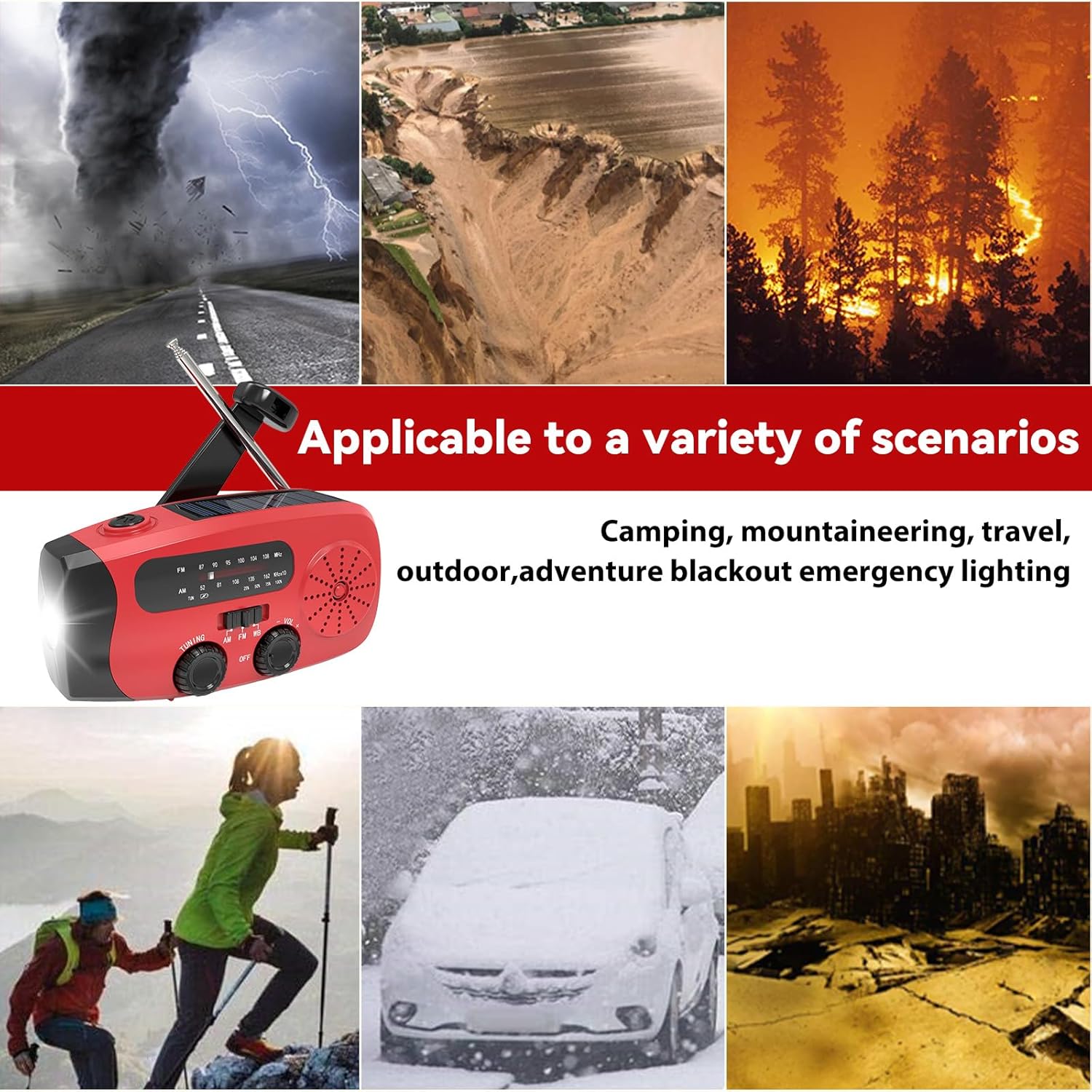 - 【AM/FM + NOAA-Wetterbandwarnungen】 Bleiben Sie mit lokalen Nachrichten (AM: 522–1620 kHz), Musik (FM: 87–108 MHz) und wichtigen Wetterwarnungen über das NOAA-Wetterband (162,4–162,55 MHz) auf dem Laufenden. Unverzichtbar für Echtzeit-Sturmwarnungen, Waldbrände oder Naturkatastrophen – Ihre Lebensader in Notfällen.