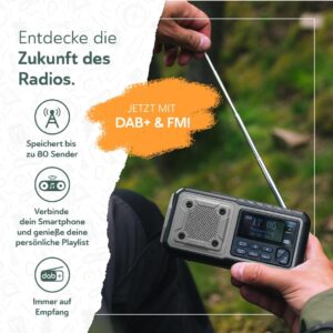 Das Kurbelradio DAB+/UKW | Notfall kombiniert moderne Empfangstechnik mit klassischer Betriebssicherheit. Der integrierte 5000 mAh Akku bietet genügend Kapazität, um dein Smartphone in kritischen Momenten zu laden oder über viele Stunden Nachrichten und Unterhaltung zu liefern. Die neue DAB+ Funktion hebt den Standard für tragbare Radios deutlich an, da sie digitale Audioübertragung ohne das typische Rauschen ermöglicht, was besonders in signalarmen Umgebungen den Informationsfluss sichert.
